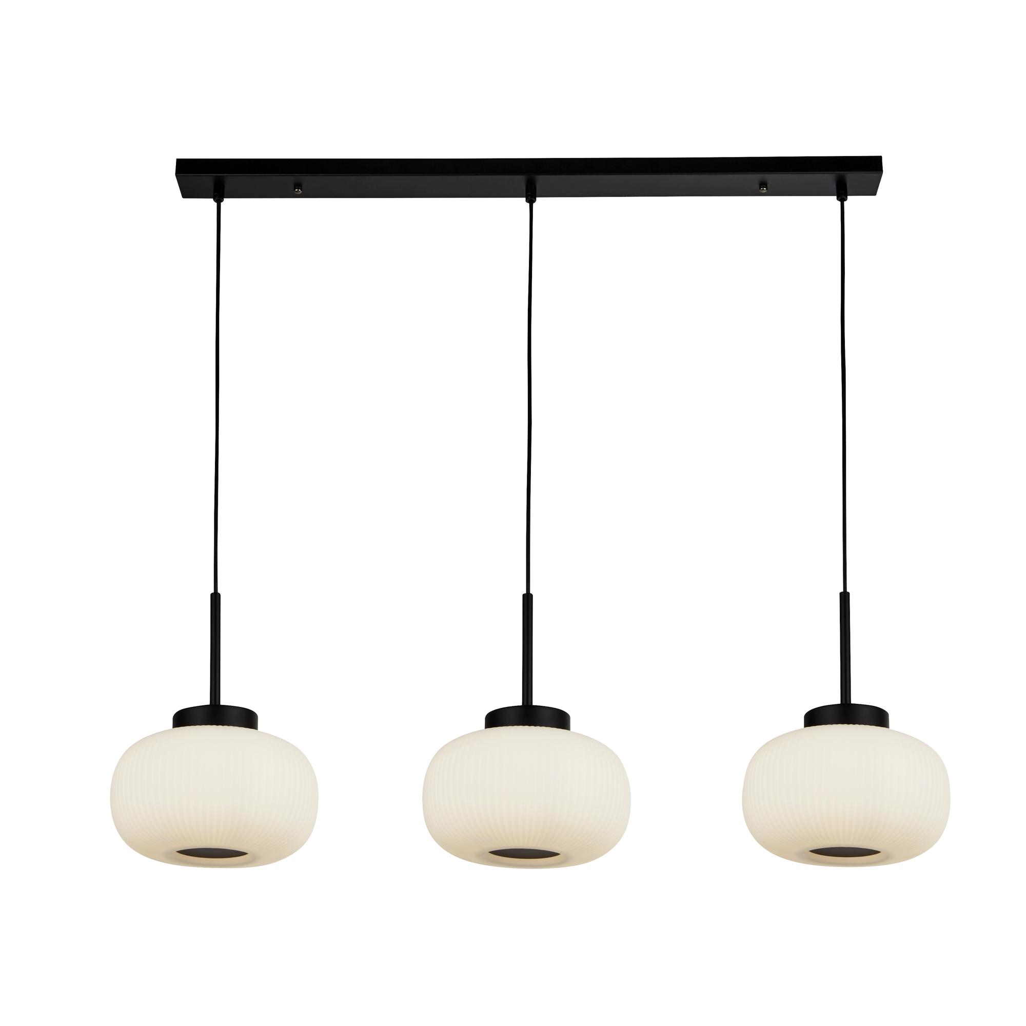 Lumina 3Lt Bar Pendant – Black Metal & Opal Ribbed Glass