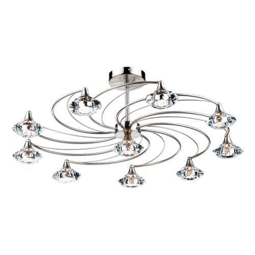 Luther 10 Light Semi Flush Satin Chrome Crystal