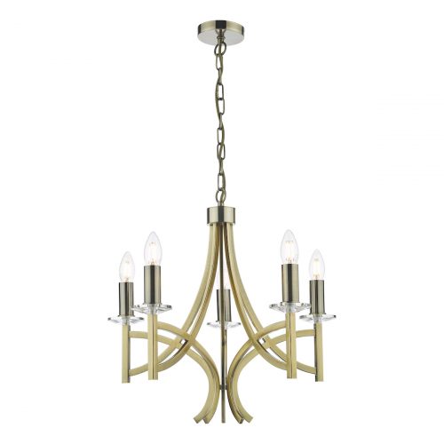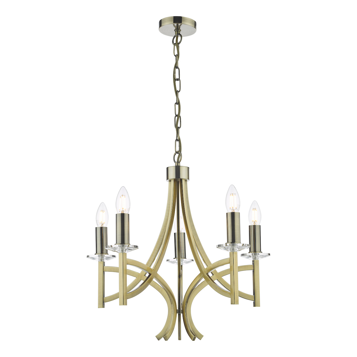 Lyon 5 Light Armed Fitting Antique Brass Crystal