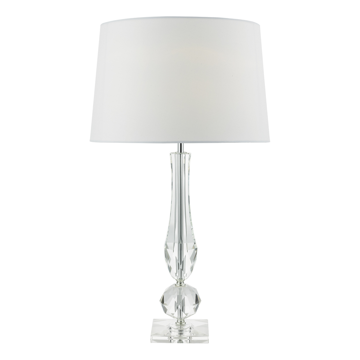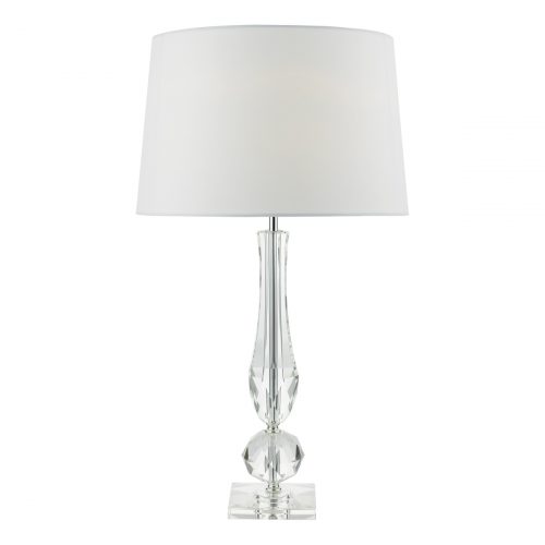 Macy Table Lamp Cut Crystal Base c/w White Faux Silk Lined Shade