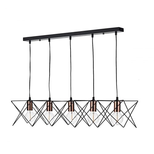 Midi Cage 5 Light Bar Pendant Matt Black Bright & Copper