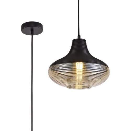Milazzo Single Vase Pendant 1 Light E27, Black/Amber Glass