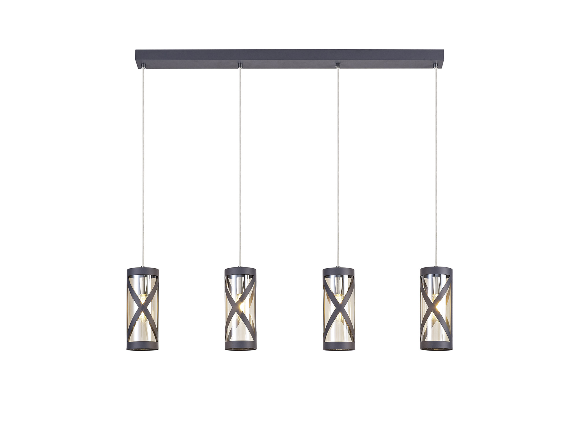 Neptune 4 Light Bar Linear Pendant E14, Matt Grey/Polished Chrome/Cognac
