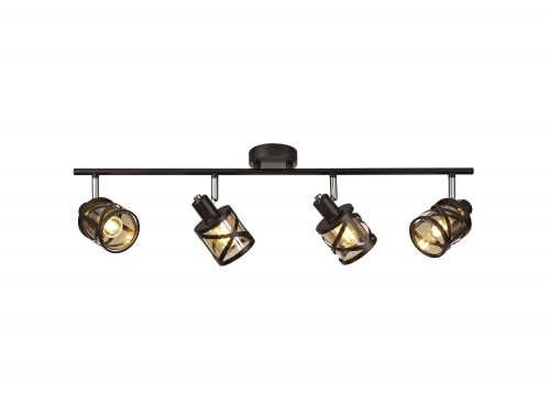 Neptune 4 Light Linear Bar Spotlight E14, Oiled Bronze/Polished Chrome/Amber