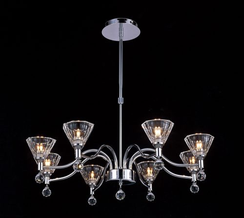 A range of impressive Polished Chrome arms finished of with an Optical Prism Glass cup and lead crystal ball. The neat telescopic rod allows the fittings to be reduced and used on lower ceilings,