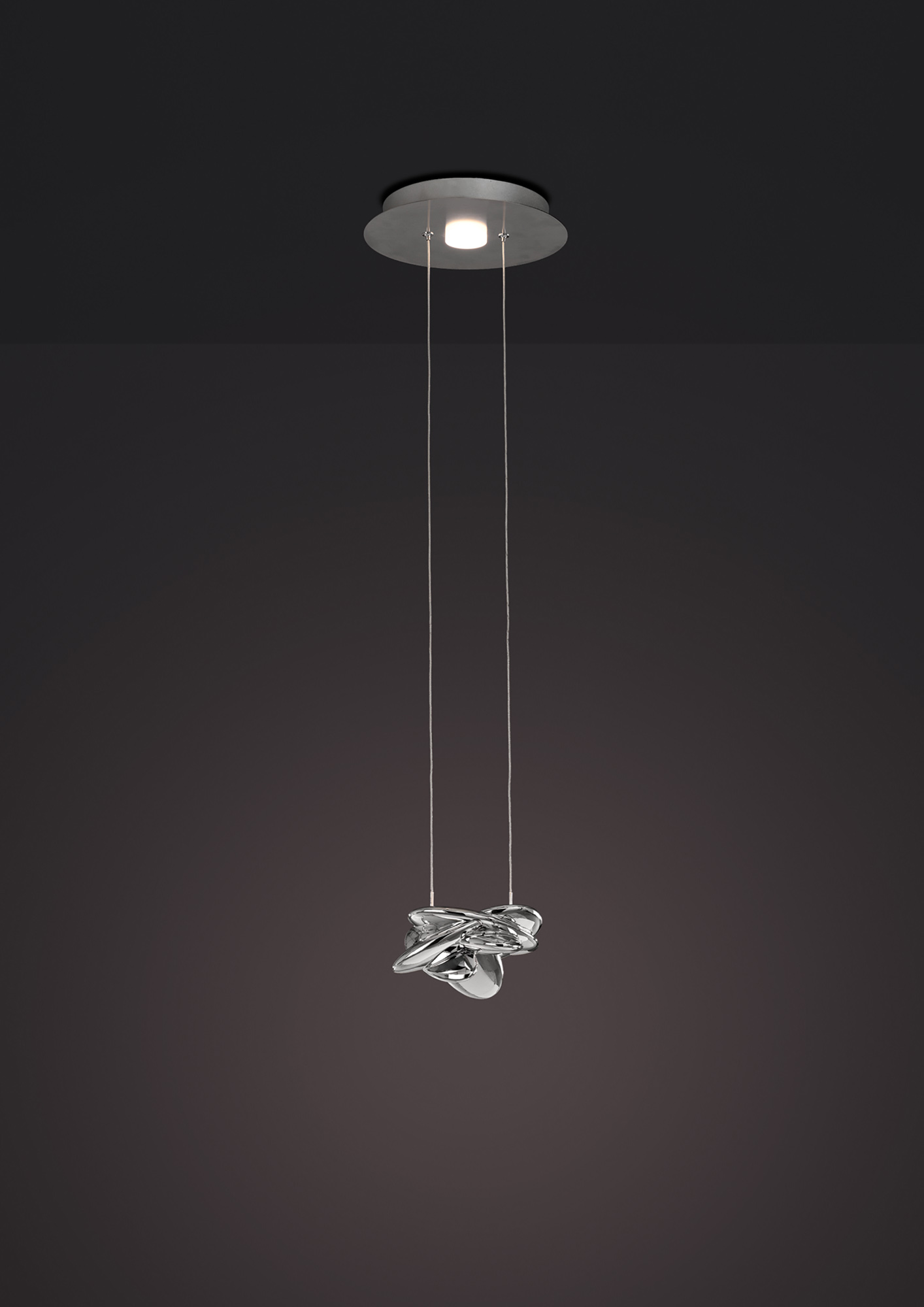 Nido consists of intricately formed substantial sculptural shapes, coated in a metallic polished chrome finish. Each piece holds a set of integral LED’s diffused at the top of the shape, enabling the light to be emitted in an upwards direction. To provide even more illumination the satin nickel ceiling plates of the pendant lights, host LED disks concealed within an acrylic diffusers, further increasing the lumen output and directionality of light. With warm white (3000K) LED’s and a 3 year warranty, this ultra-modern range will create character in its chosen room setting.