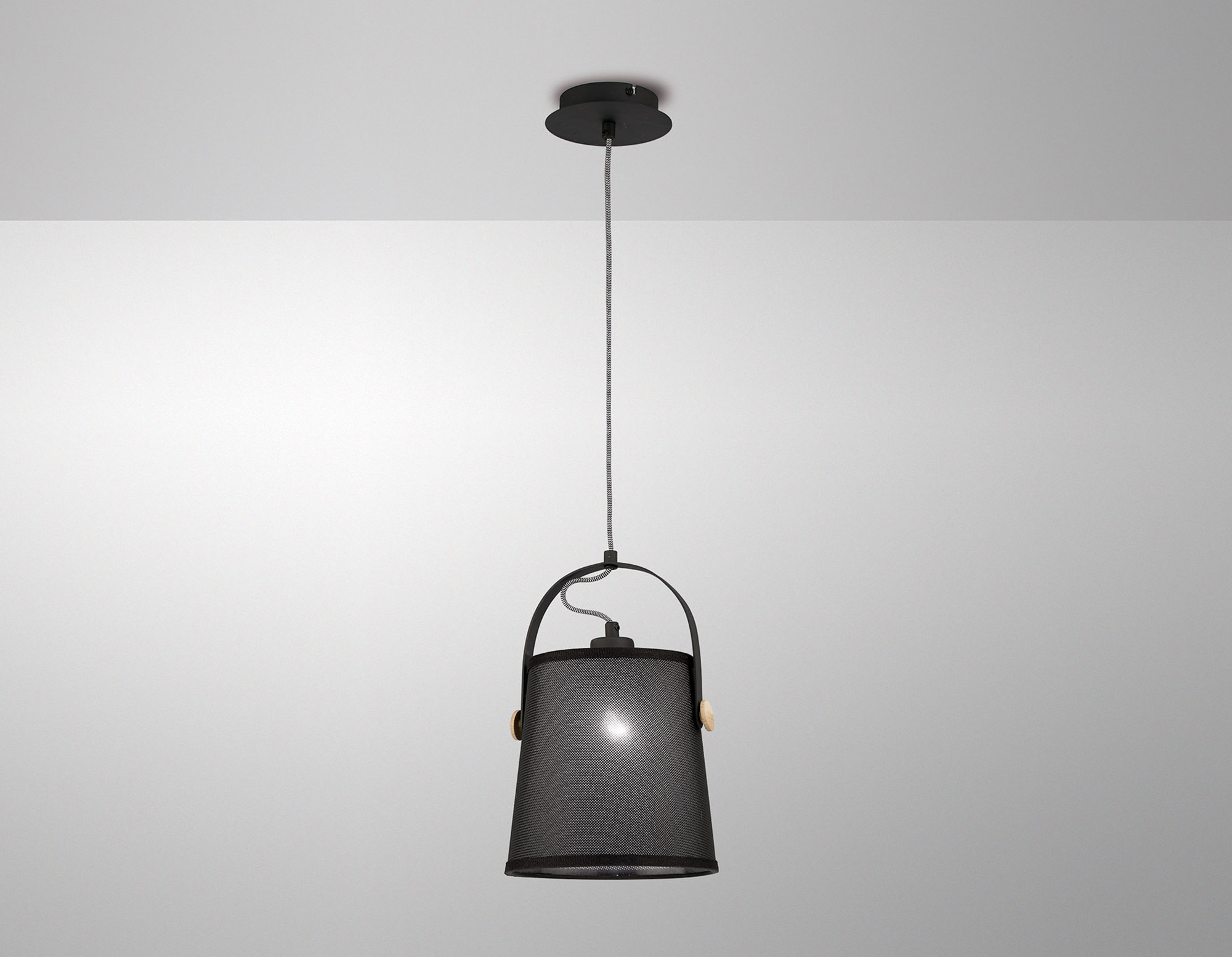 Nordica Pendant With Black Shade 1 Light E27, Matt Black/Beech With Black Shade