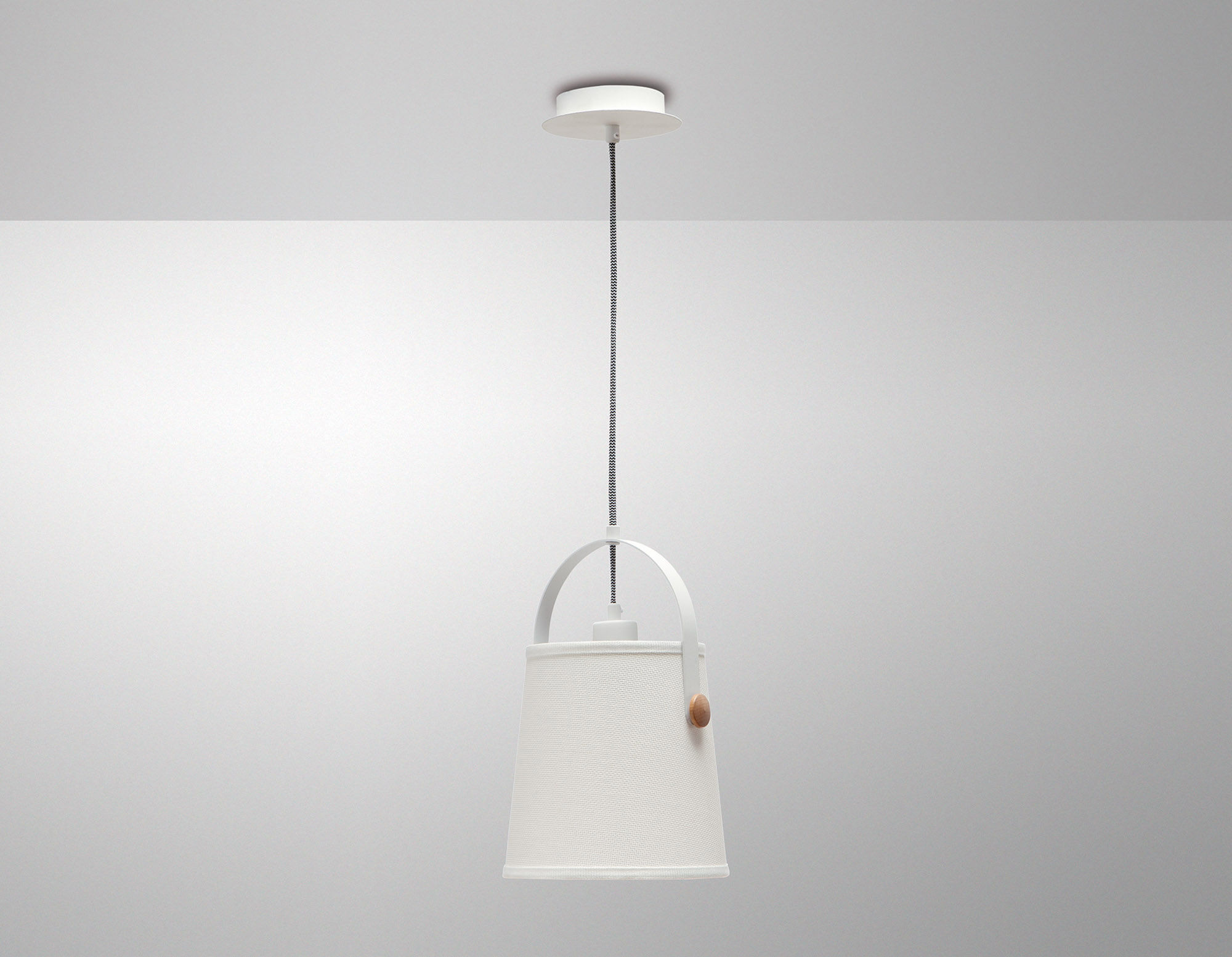 Nordica Pendant With White Shade 1 Light E27, Matt White/Beech With Ivory White Shade