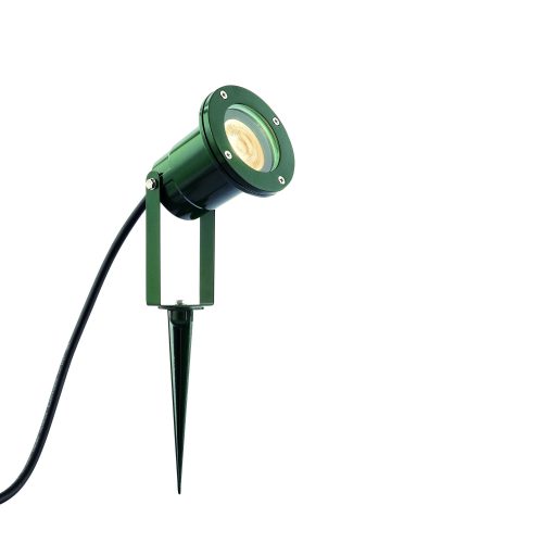 Mains voltage spike light constructed in robust die cast aluminium, with a smart green finish. This adjustable spotlight is placed in the ground with the spike provided, and can be angled to give effective accent lighting in any outdoor environment. Comes pre- wired with a 3m flex cable.