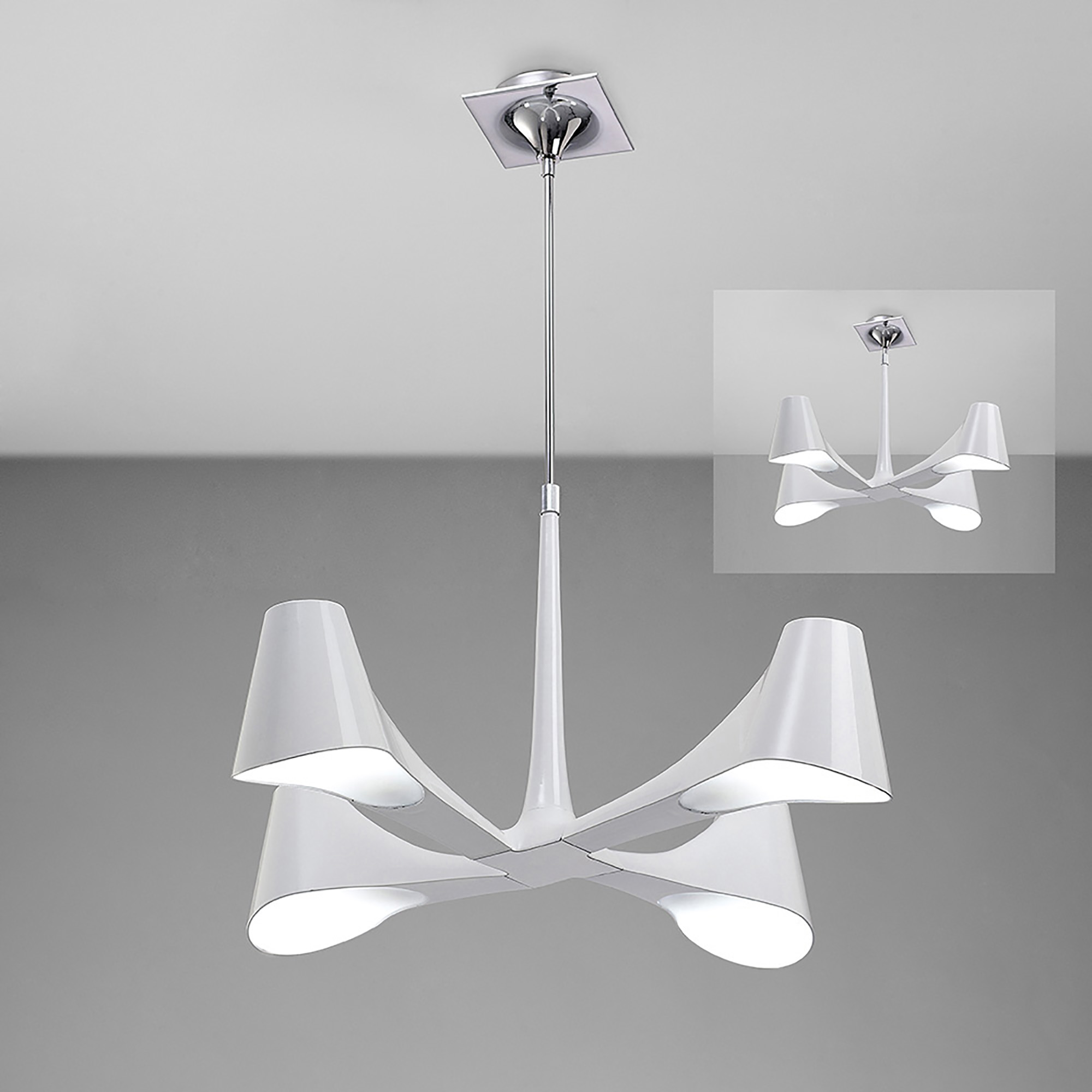 Ora Telescopic Convertible To Semi Flush 4 Light E27, Gloss White/White Acrylic/Polished Chrome, CFL Lamps INCLUDED