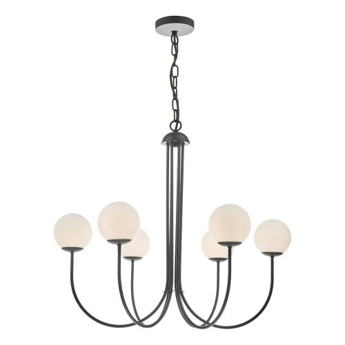 Ornella 6 Light Pendant Matt Black & Opal Glass