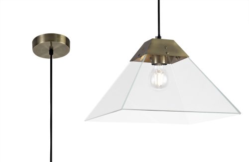 Oxford Square Pendant Large, 1 Light E27, Antique Brass