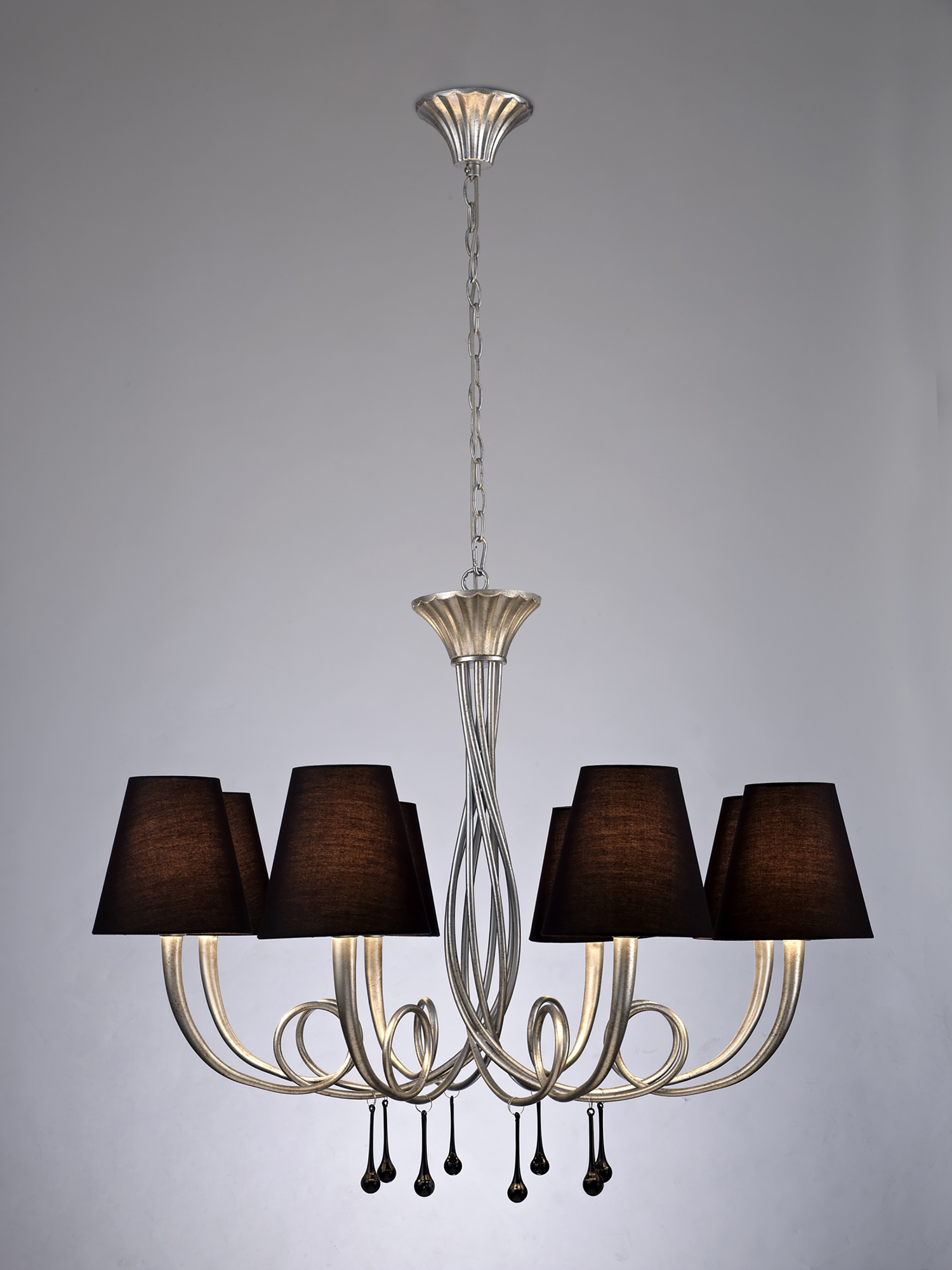 Paola Pendant 95cm Round, 8 x E14 (Max 40W), Silver Painting, Black Shades