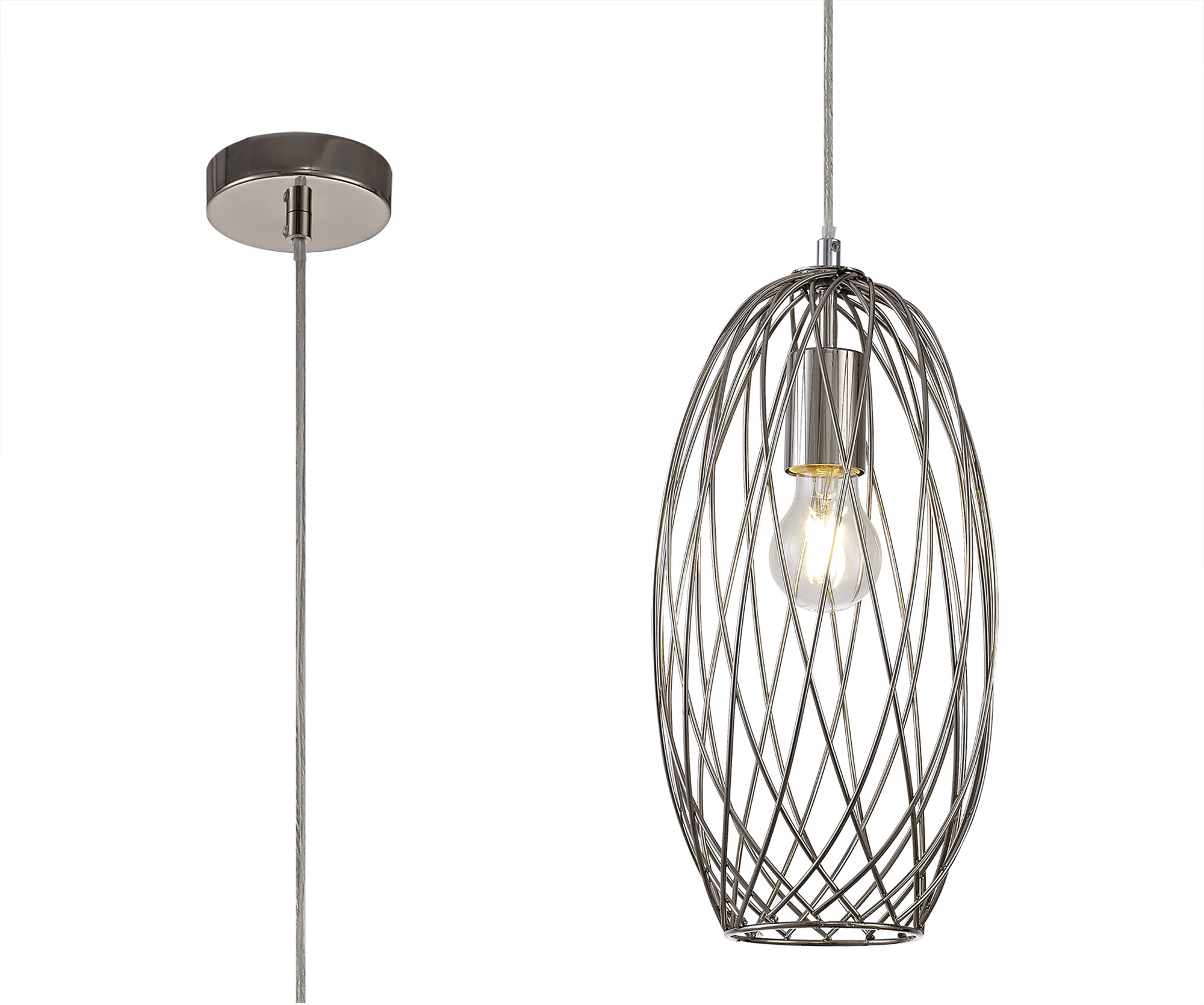 The Peacock range hosts a trio of traditional pendants with distinctly varied shapes. Their composition of hollow diamonds encircle the single E27 lampholder of each fitting. This structure is available as either an elliptical sphere, curved cylinder or sphere shape, to suit your personal preference. Peacock can be used with various lamps to adapt each pendant to a different setting; a cool white LED lamp could be used for a more modern ambience or you could opt for a vintage LED lamp to create a rustic urban environment.