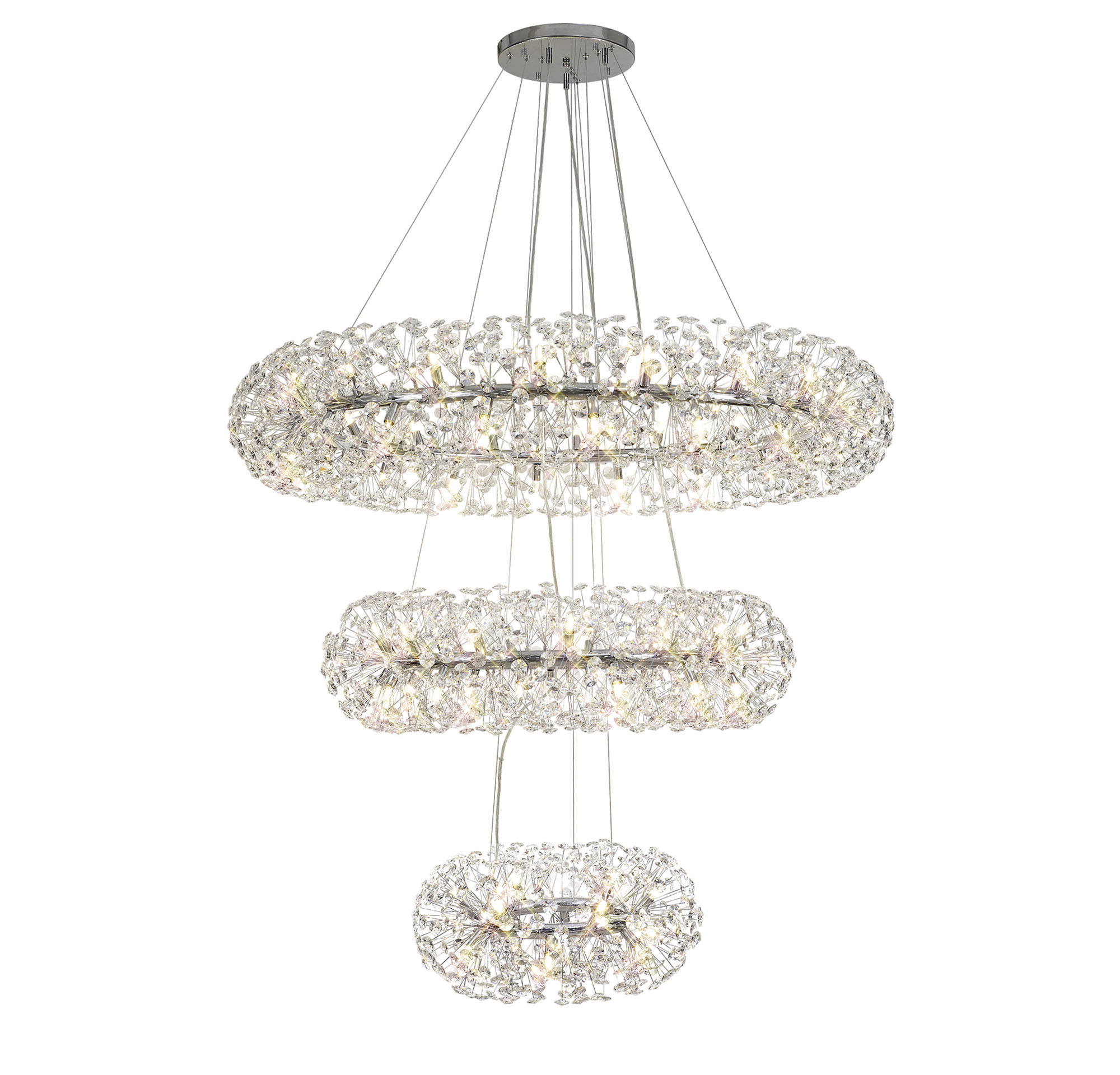 Perth 3 Tier Pendant 74 Light G9 Polished Chrome/Crystal, Item Weight: 37.6kg