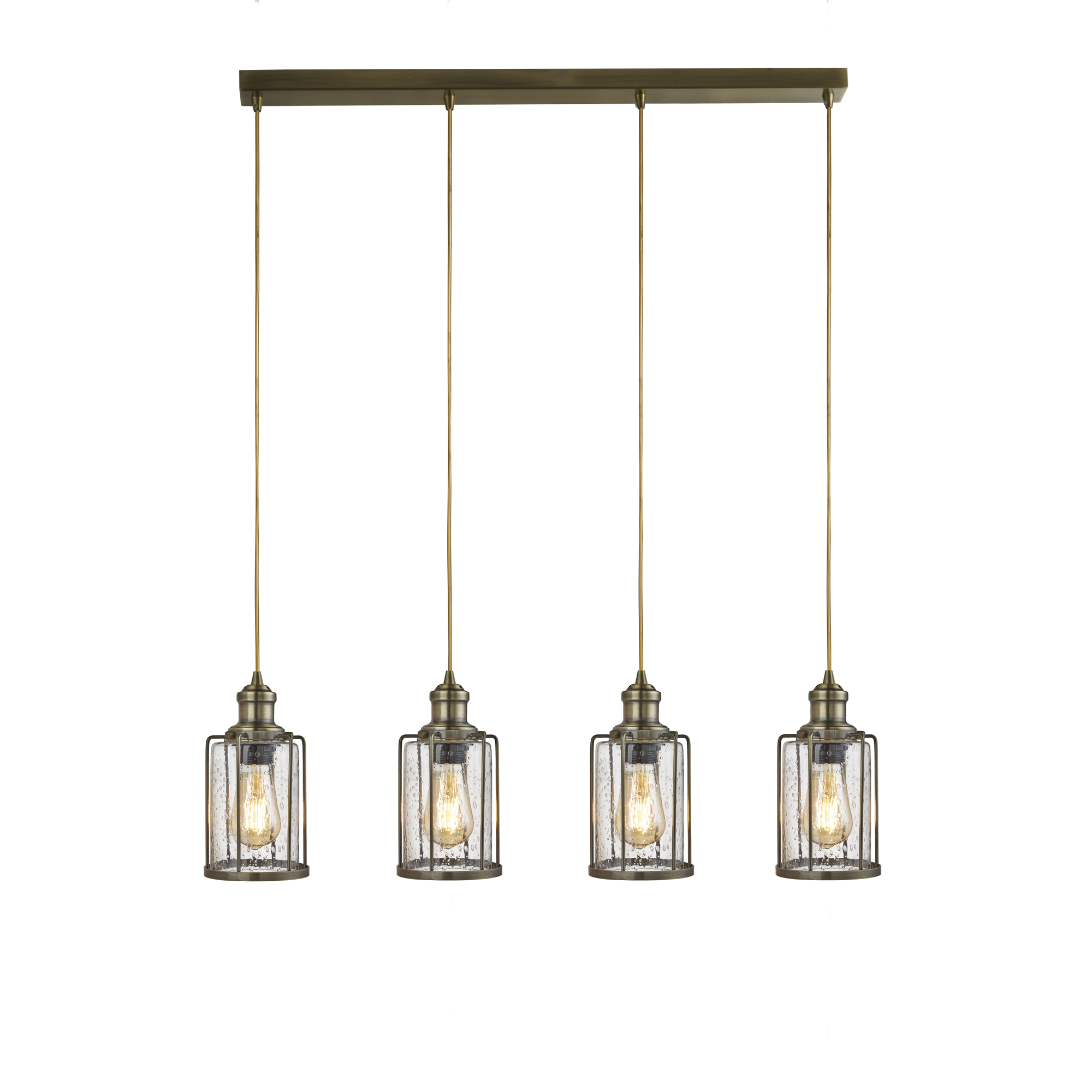 Pipes 4Lt Bar Pendant – Antique Brass Metal & Seeded Glass