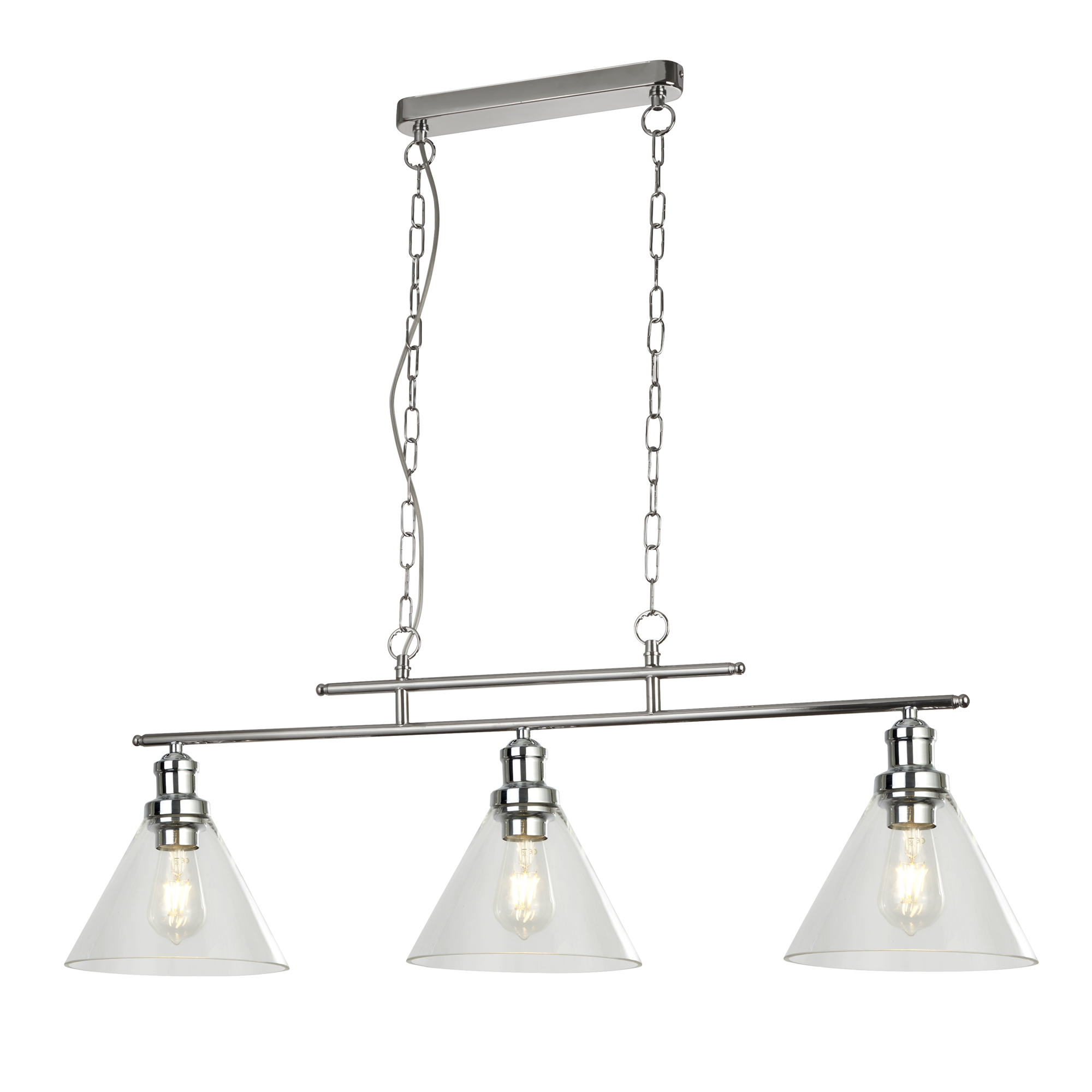 Pyramid 3Lt Bar Pendant – Chrome Metal & Glass