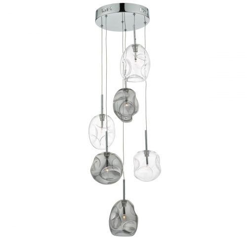Quinn 6 Light Cluster Pendant Smoked & Clear Glass