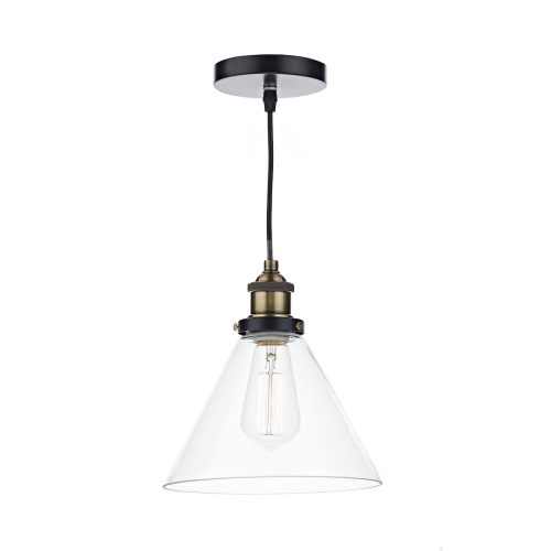 Ray 1 Light Pendant Antique Brass Clear