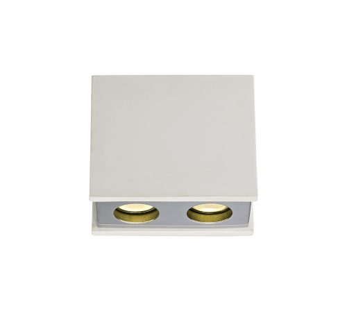 Riga 2 Light Rectangular Ceiling GU10, White Paintable Gypsum With Polished Chrome Cover