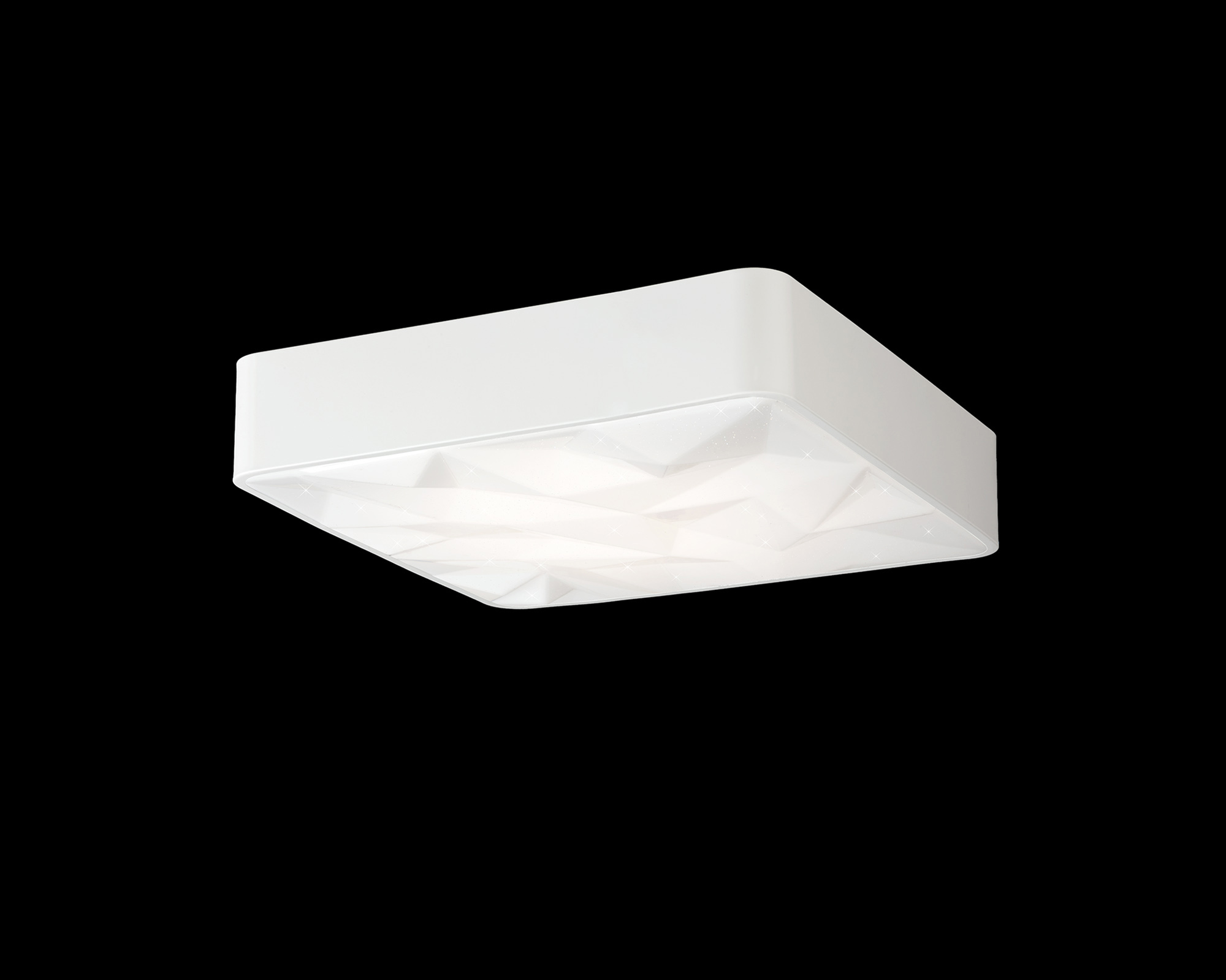 This flush LED ceiling light collection partners Mantra’s famous inventive Spanish designs with their innovative patented LED technology. The Rombos range offers two flush ceiling lights in different wattages with an impressive lumen output. Both lights are dimmable ranging between 2700K-6500K a function which is controlled via the remote supplied with the light. The white square framework creates a surround for the diffuser, moulded to exhibit geometric shapes which alternately protrude and retract. This creative characteristic provides design and feature even when not illuminated.