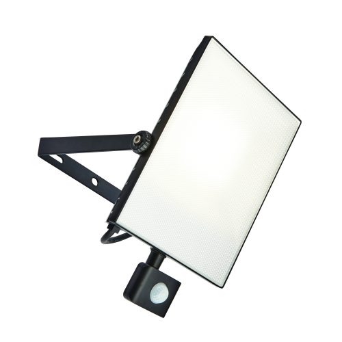 The Scimitar range consists of compact and energy efficient wall lights. This 50W PIR version provides a high light output of 4000 lumens with a colour temperature of 4000K. The Scimitar has a unique prismatic shade to reduce glare & an angled bracket to ensure easy installation. The built-in PIR has a 120º detection angle, 8m maximum range with a 10 sec – 7 min timer function. Fitting is IP44 rated, ensuring it is water and dirt resistant. It comes complete with integrated control gear and finished in textured black paint. Other finishes & non PIR versions are available.