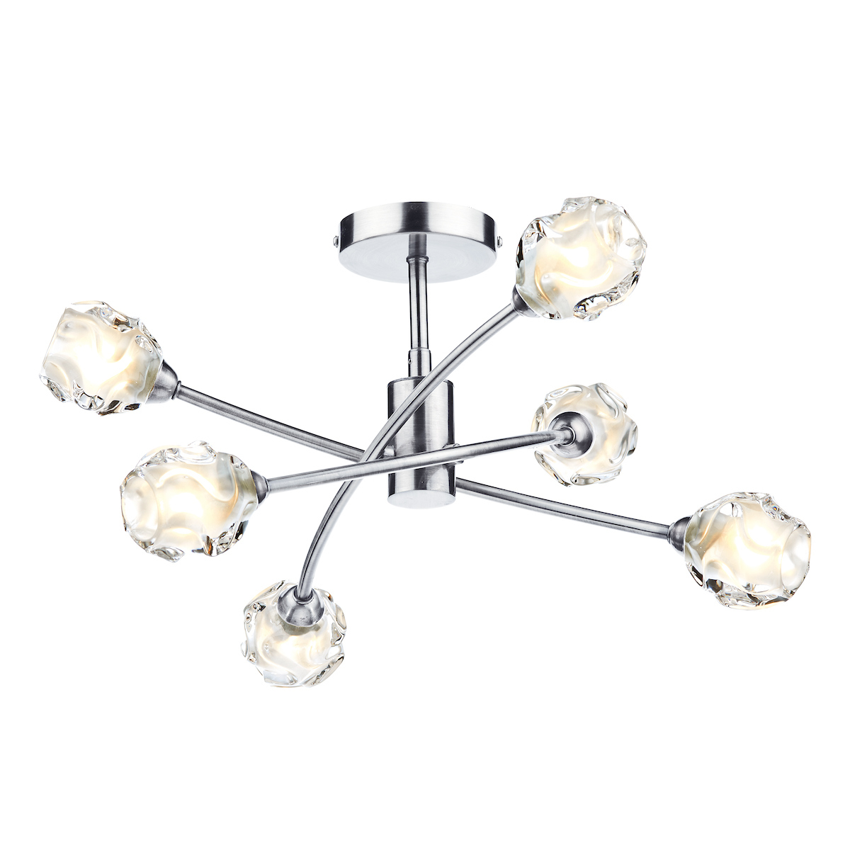 Seattle 6lt Semi Flush Satin Chrome & Sculptured Glass