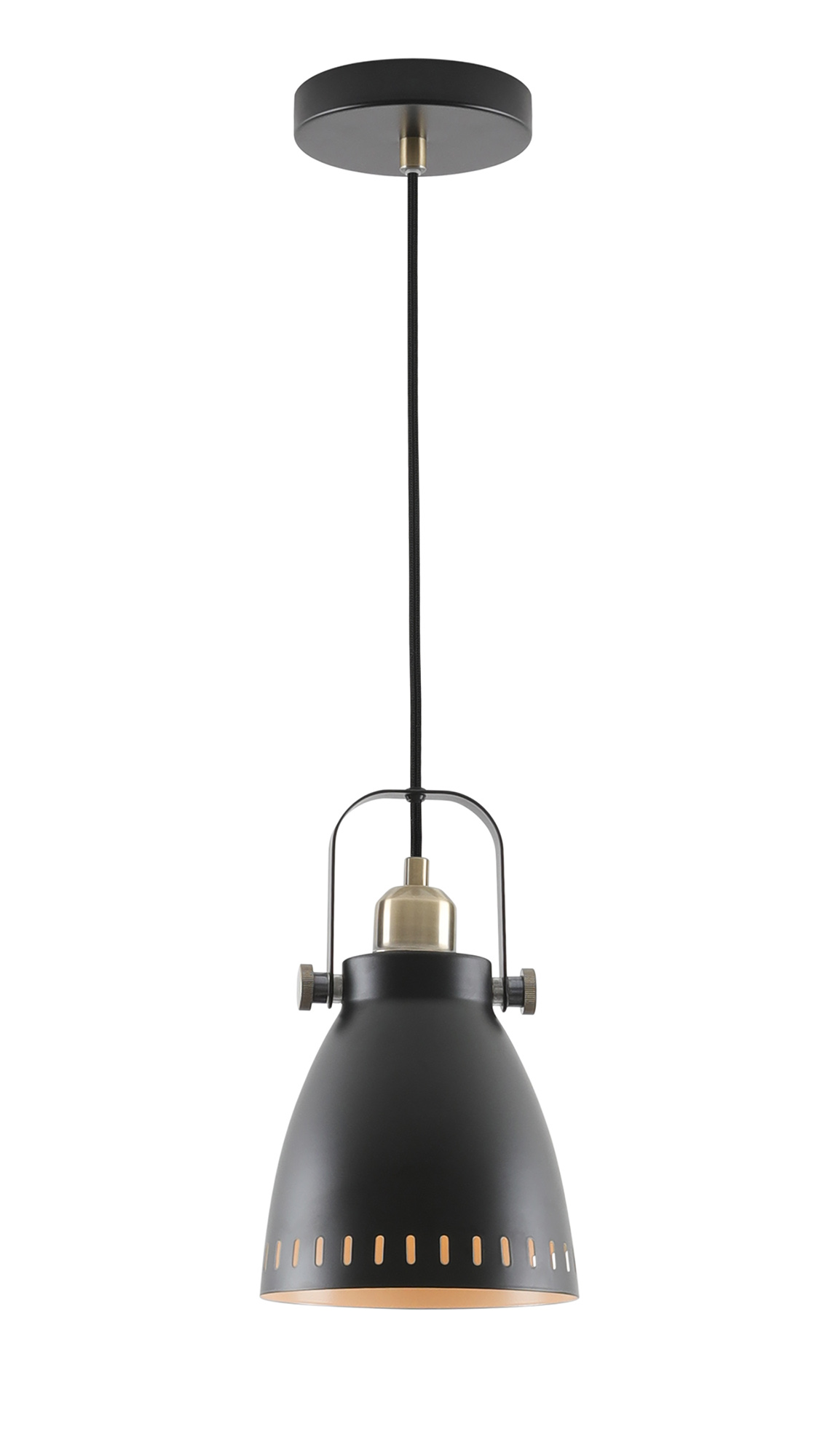 Swansea Small Pendant, 1 x E27, Matt Black/Antique Brass/Khaki