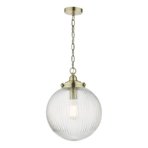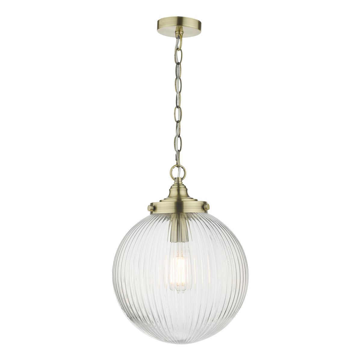Tamara 1 Light Single Pendant Antique Brass Ribbed Glass