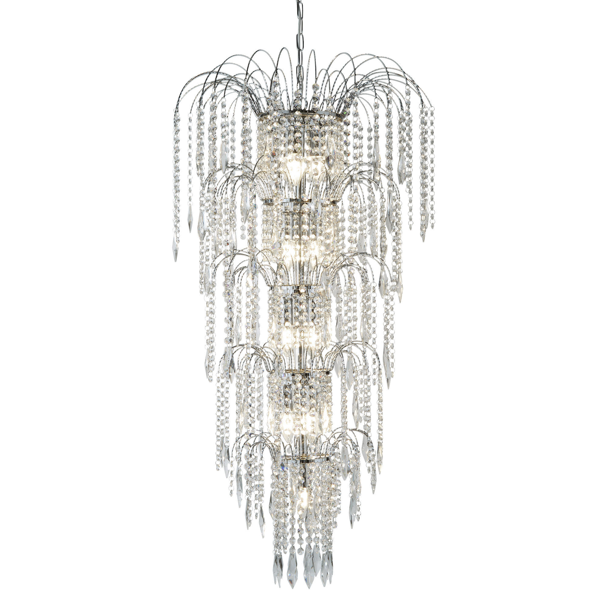 Waterfall 13Lt Chandelier – Chrome Metal & Crystal