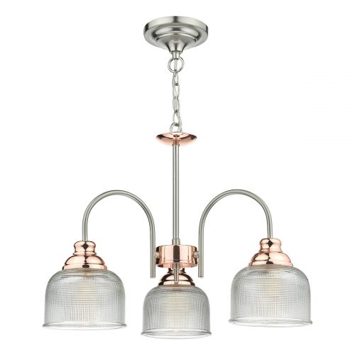 Wharfdale 3lt Pendant Satin Chrome Copper detail Glass shades