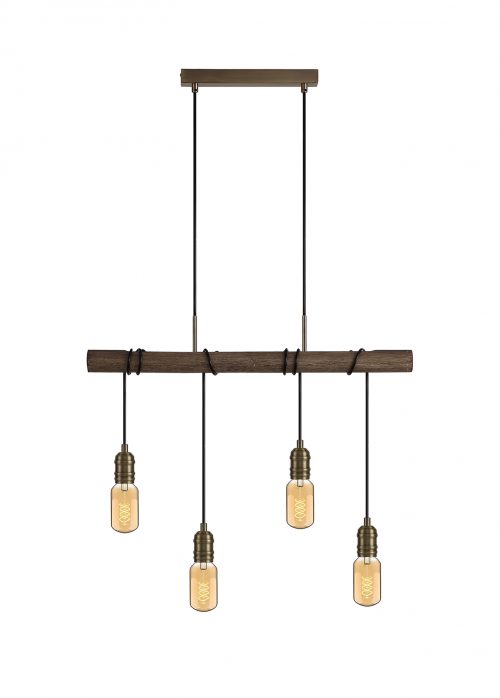 Whitehawk Pendant, 4 x E27, Medium Oak/Antique Brass